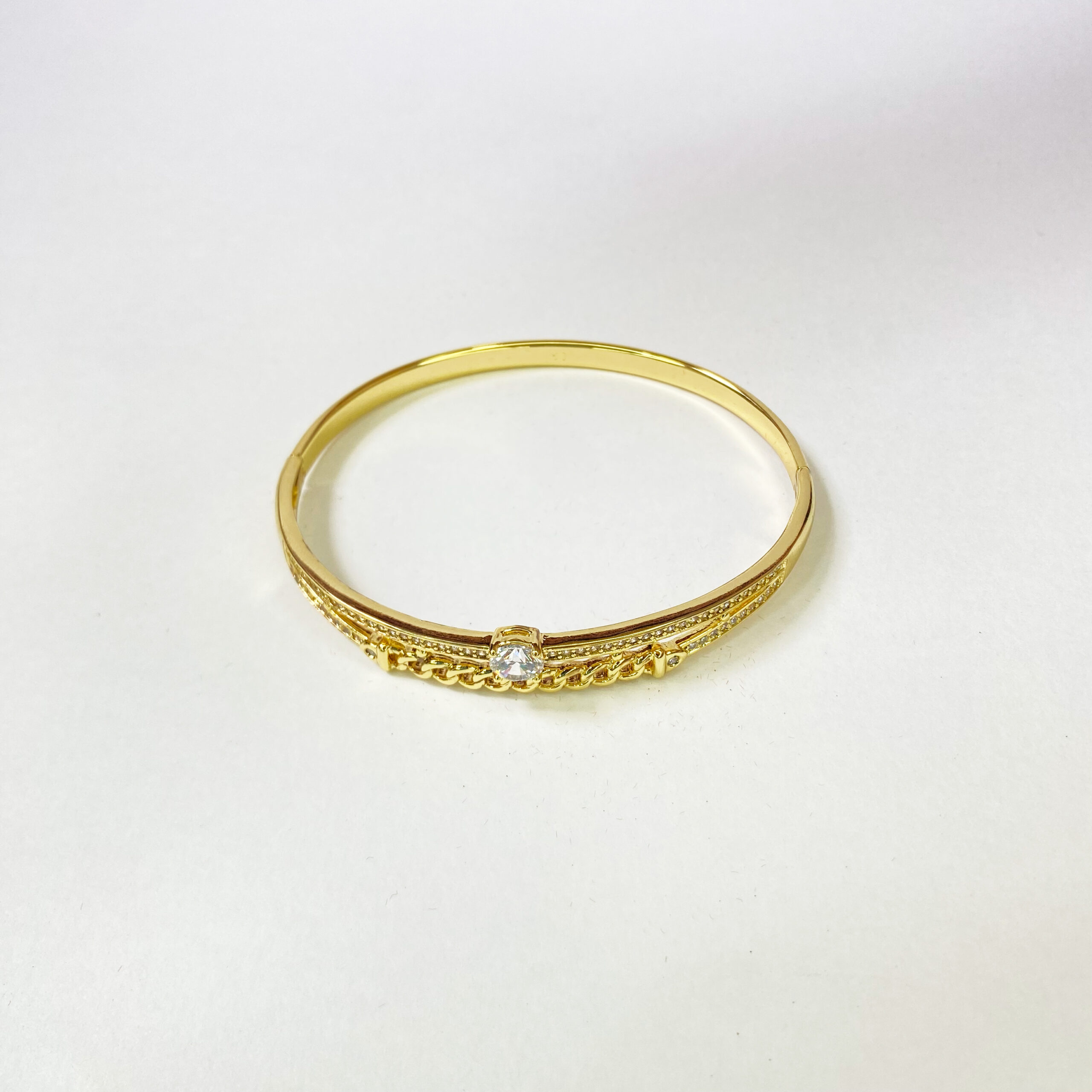 Bracelet jonc en acier inoxydable doré avec zircon et chaîne décorative
