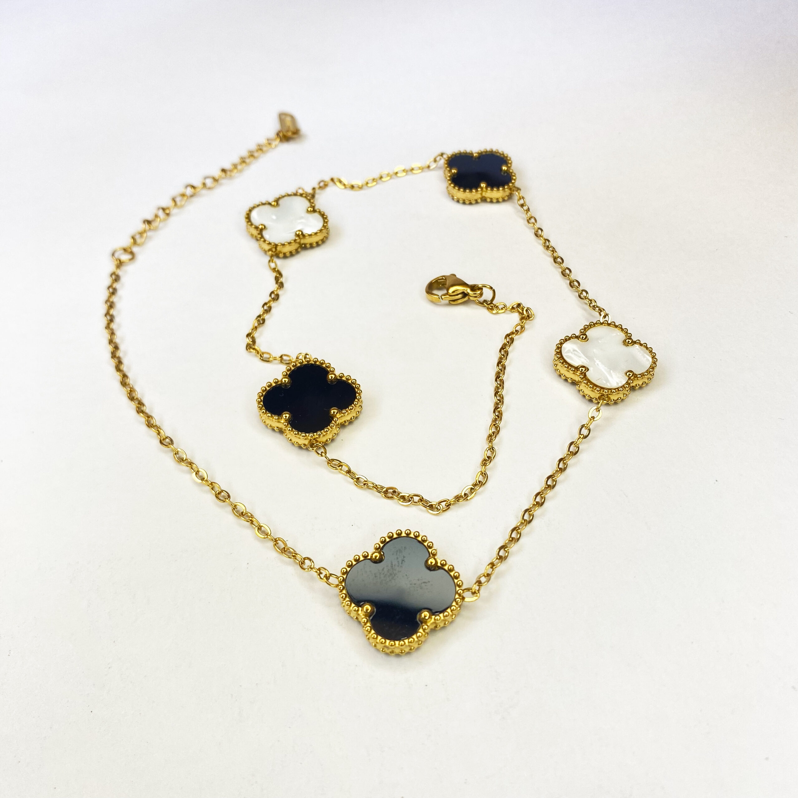 Collier Trèfles Dorés Multicolores – Acier Inoxydable Femme Hypoallergénique