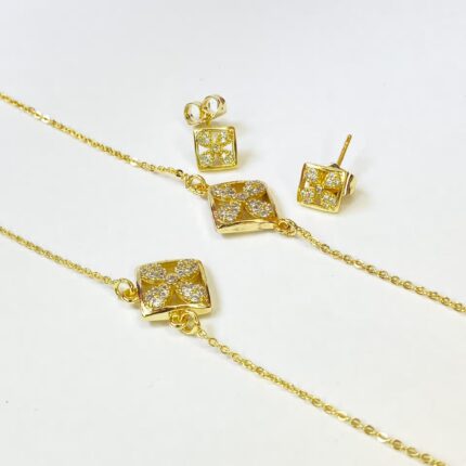 Coffret Parure Dorée pour Femme – Collier, Bracelet et Boucles d’Oreilles avec Zircons